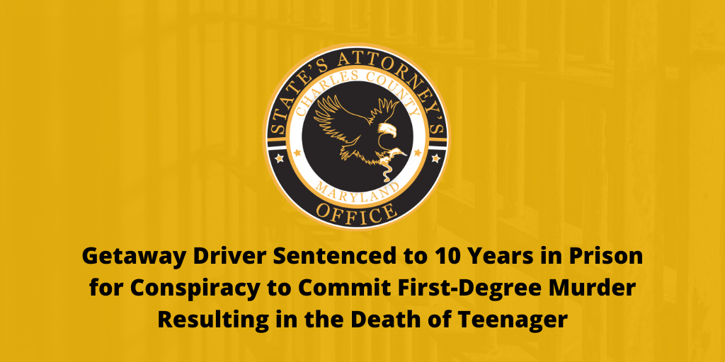 LA PLATA, MD—Tony Covington, State’s Attorney for Charles County, announced that on Thursday, August 21, 2025, Charles County Circuit Court Judge Monise A. Stephenson sentenced Dalvin Devonte Risi, 27, of La Plata, to 10 years in prison for Conspiracy to Commit the First-Degree Murder of Aden Christopher Garcia and the Wear, Carry, and Transport of a Handgun in a Vehicle Upon the Roads, Highways, and Parking Lots.