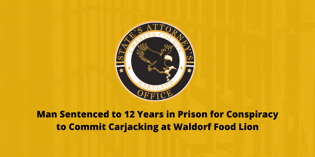 LA PLATA, MD—Tony Covington, State’s Attorney for Charles County, announced that on Thursday, October 9, 2025, Charles County Circuit Court Judge William R. Greer, Jr. sentenced Nasir Maurice Cooper, 19, to 12 years in prison for Conspiracy to Commit Carjacking. Upon release, Cooper will be placed on supervised probation for five years. If he violates the terms of his probation, he faces an additional 8 years in prison.